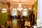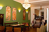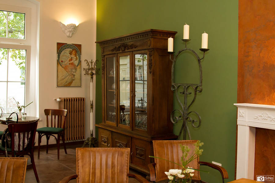 Seit dieser Woche nun haben sie ihre Ideen in die Realität umgesetzt, ein sehr gemütlich wirkendes Café ist entstanden. Der Jugendstil ist nicht nur an der Hausfassade zu erkennen, sondern zieht sich wie ein roter Faden durch das gesamte Café. Große Drucke der »Vier Jahreszeiten« des bekannten tschechischen Plakatkünstlers Alfons Mucha schmücken die Wände, alte Vitrinen und bequeme Polstermöbel versprühen Wohlfühlatmosphäre. Später soll noch eine Außenterrasse hinzukommen, welche behindertengerecht zu erreichen ist.